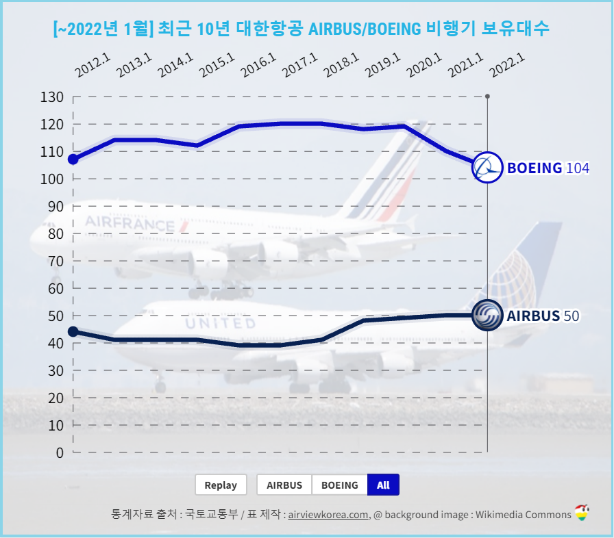 [~2022년 1월] 최근 10년 대한항공 항공기종/종류 변화
