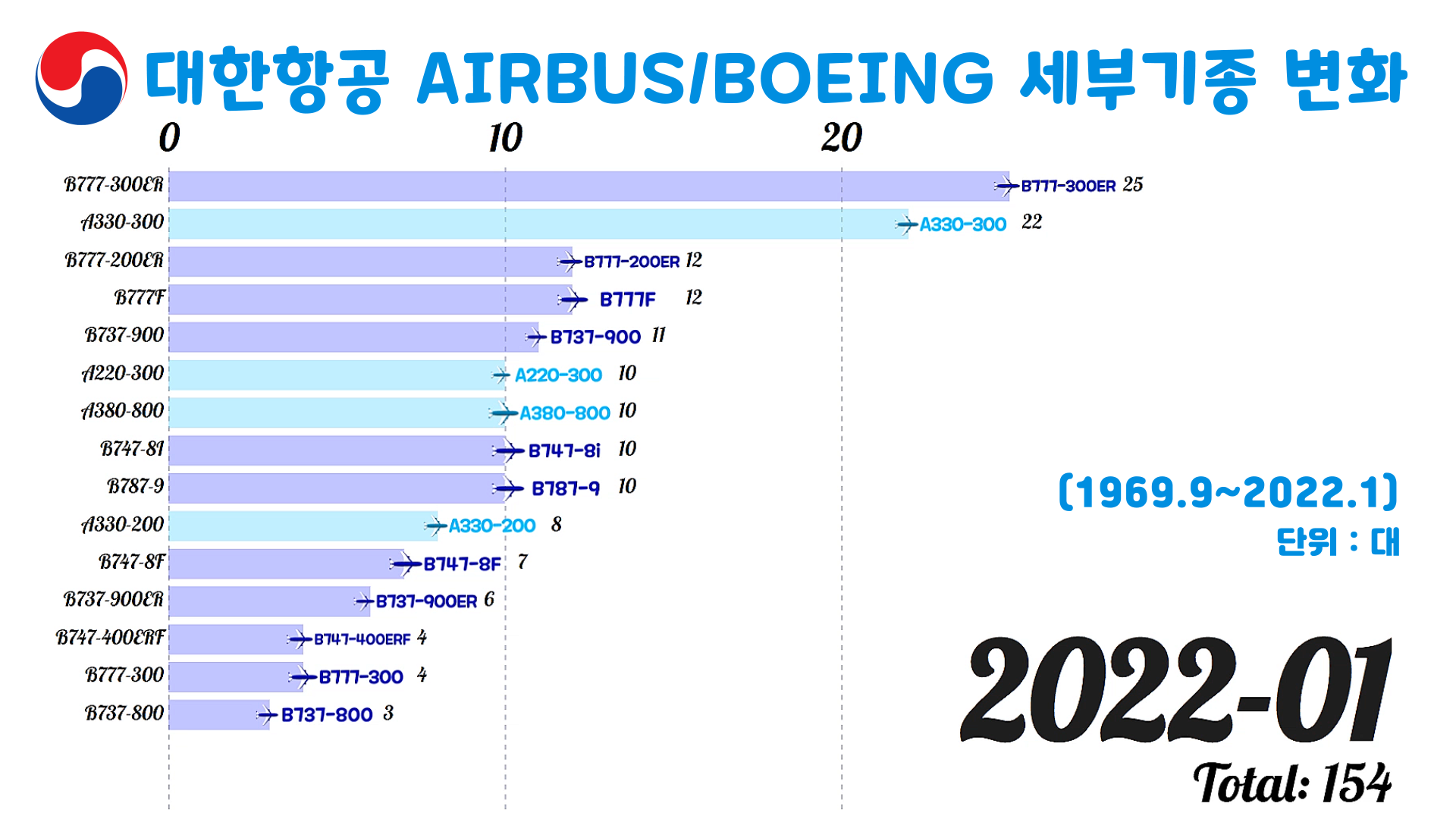 [~2022년 1월] 최근 10년 대한항공 항공기종/종류 변화