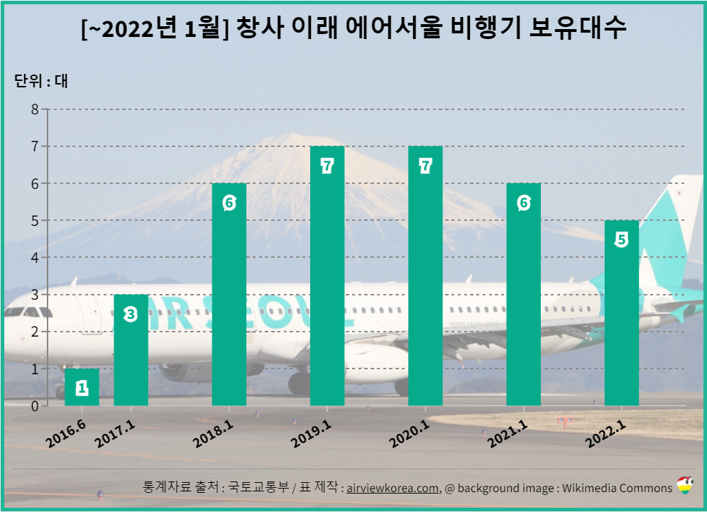 [~2022년 1월] 창사 이래 에어서울 비행기 보유대수