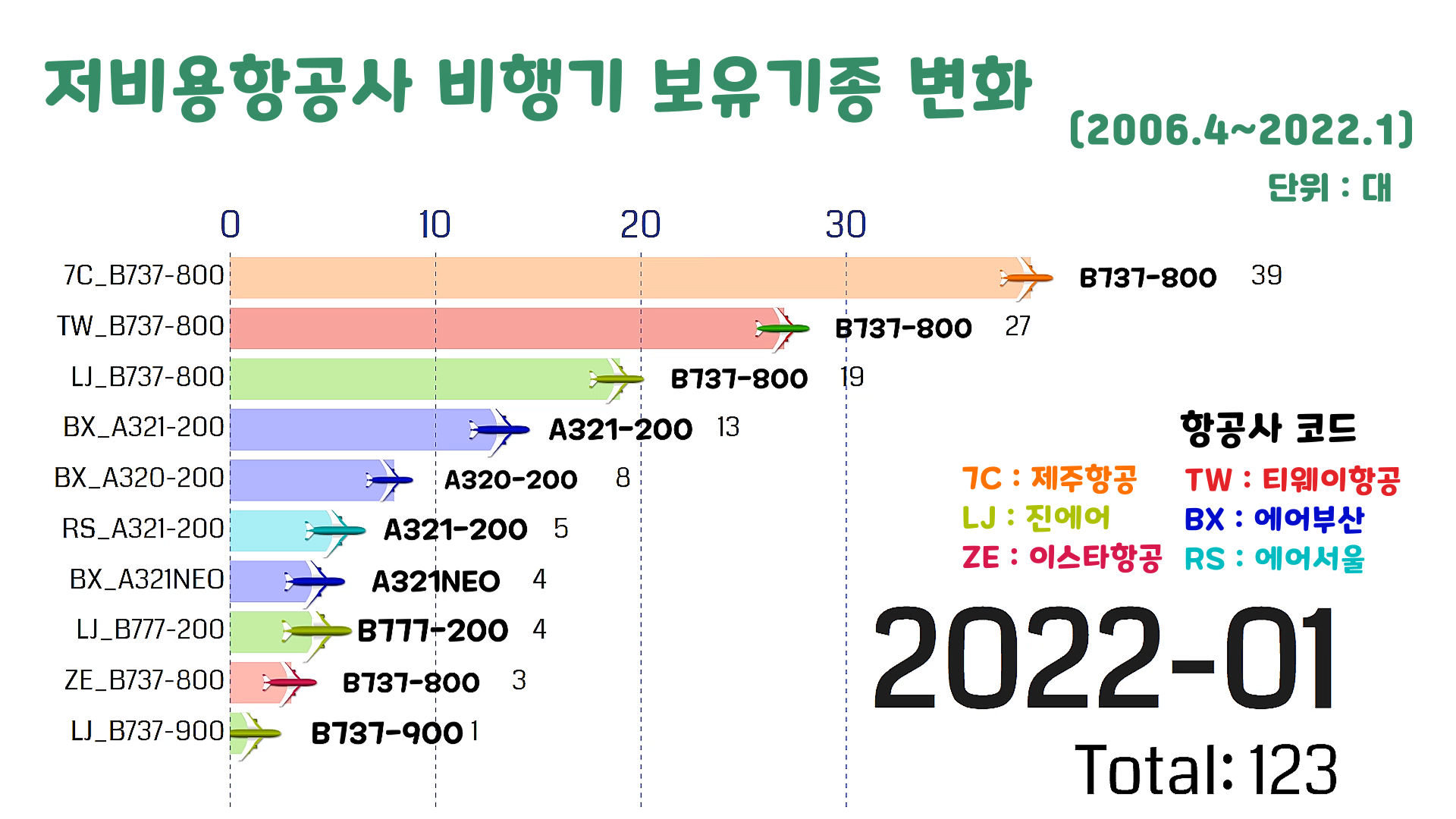 [~2022년 1월] 최근 10년 제주항공 보유기종/보유대수 변화