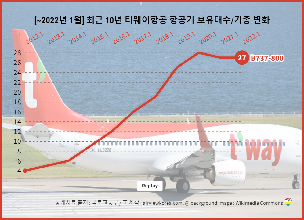 [~2022년 1월] 최근 10년 티웨이항공 비행기 항공기종/보유수 변화
