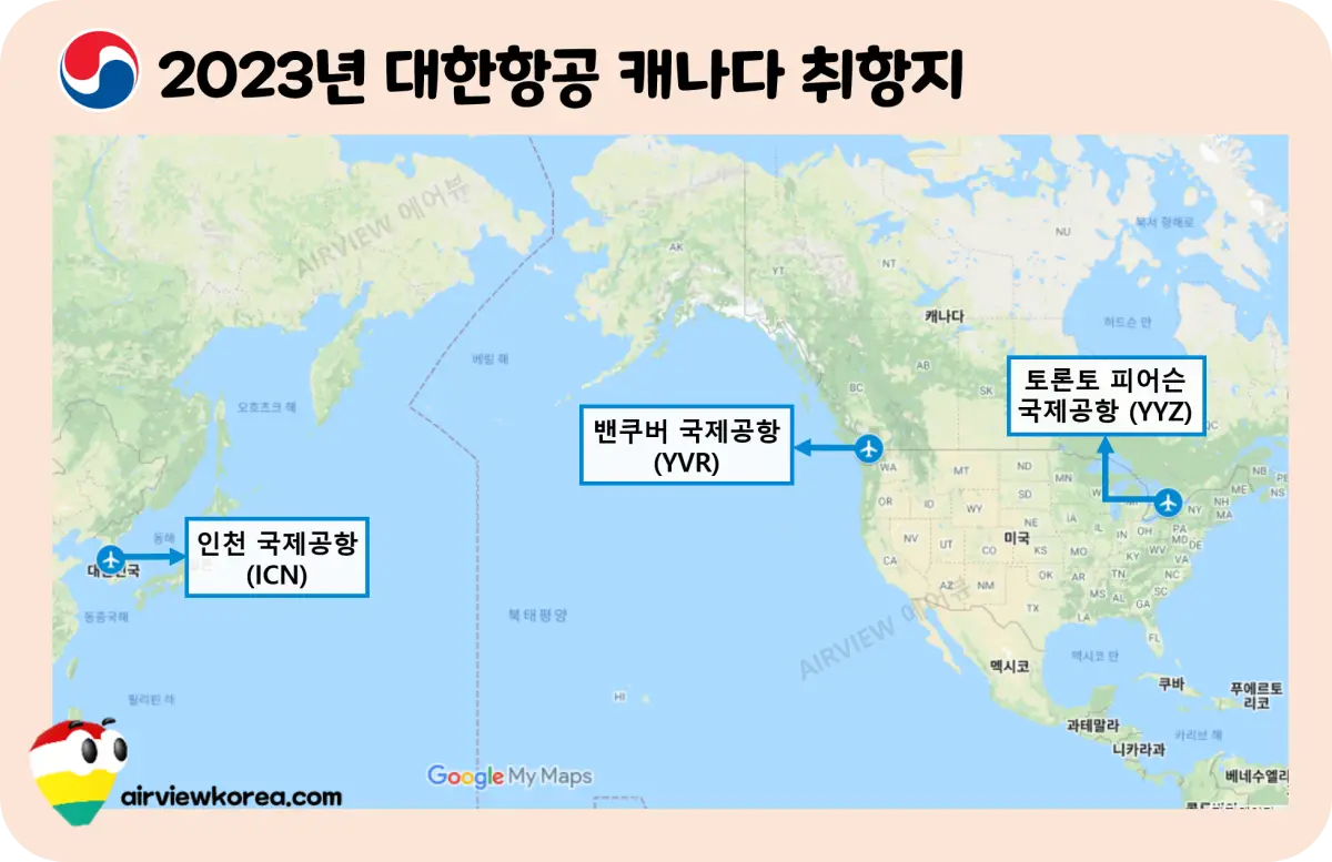 2022년 6월~7월 대한항공 캐나다 취항지 공항
