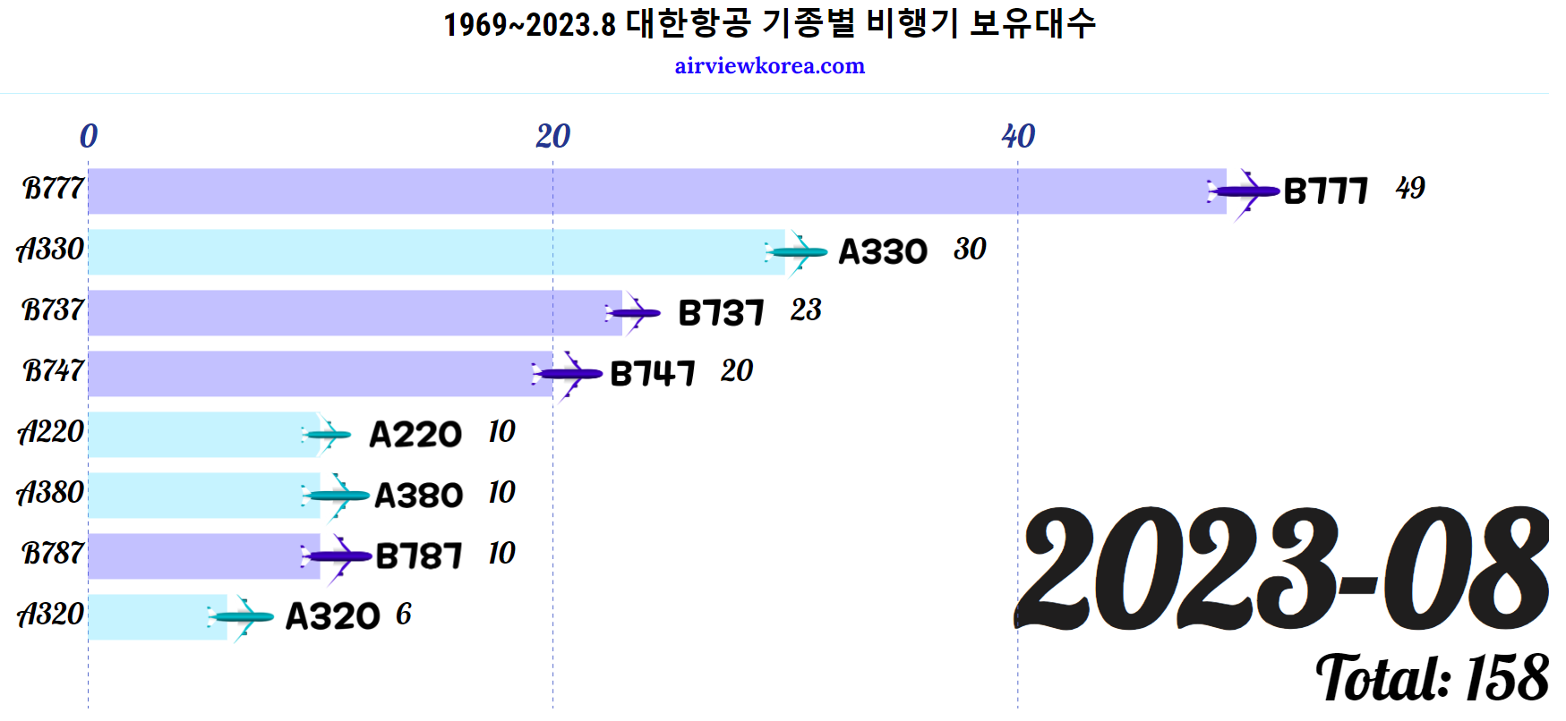 2023.8 ✈️대한항공 비행기 몇대 있어? 🛩️보유대수 & 기종 총정리