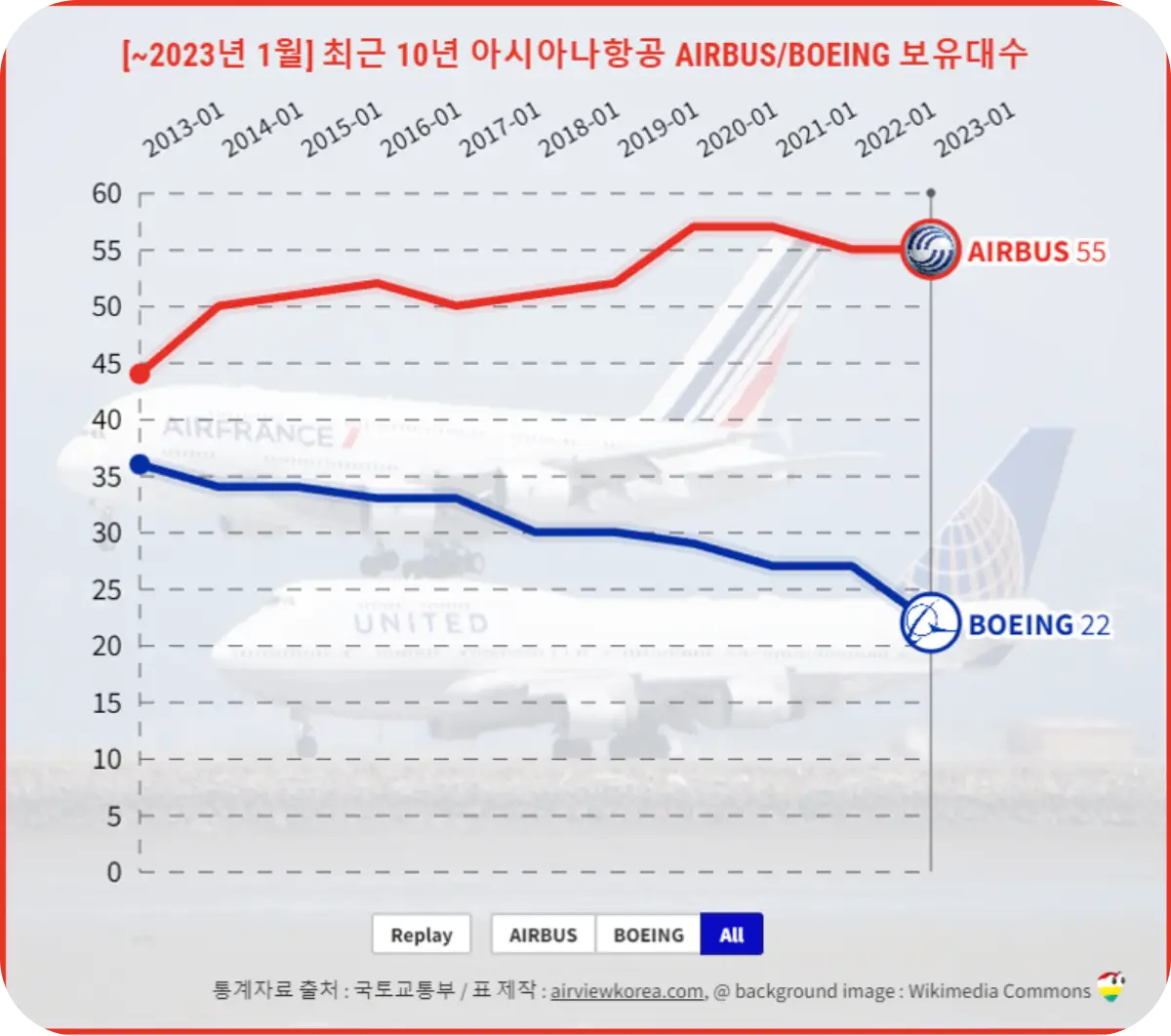 2) 최근 10년 AIRBUS/BOEING 항공기 보유 대수