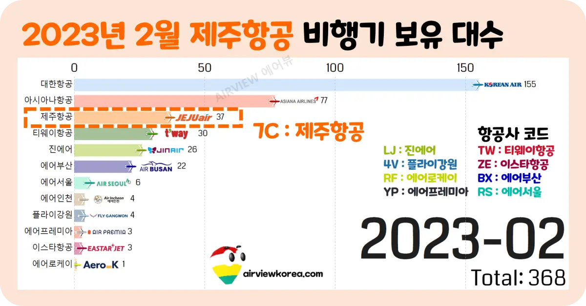 2023년 2월, 제주항공 비행기 운용 현황