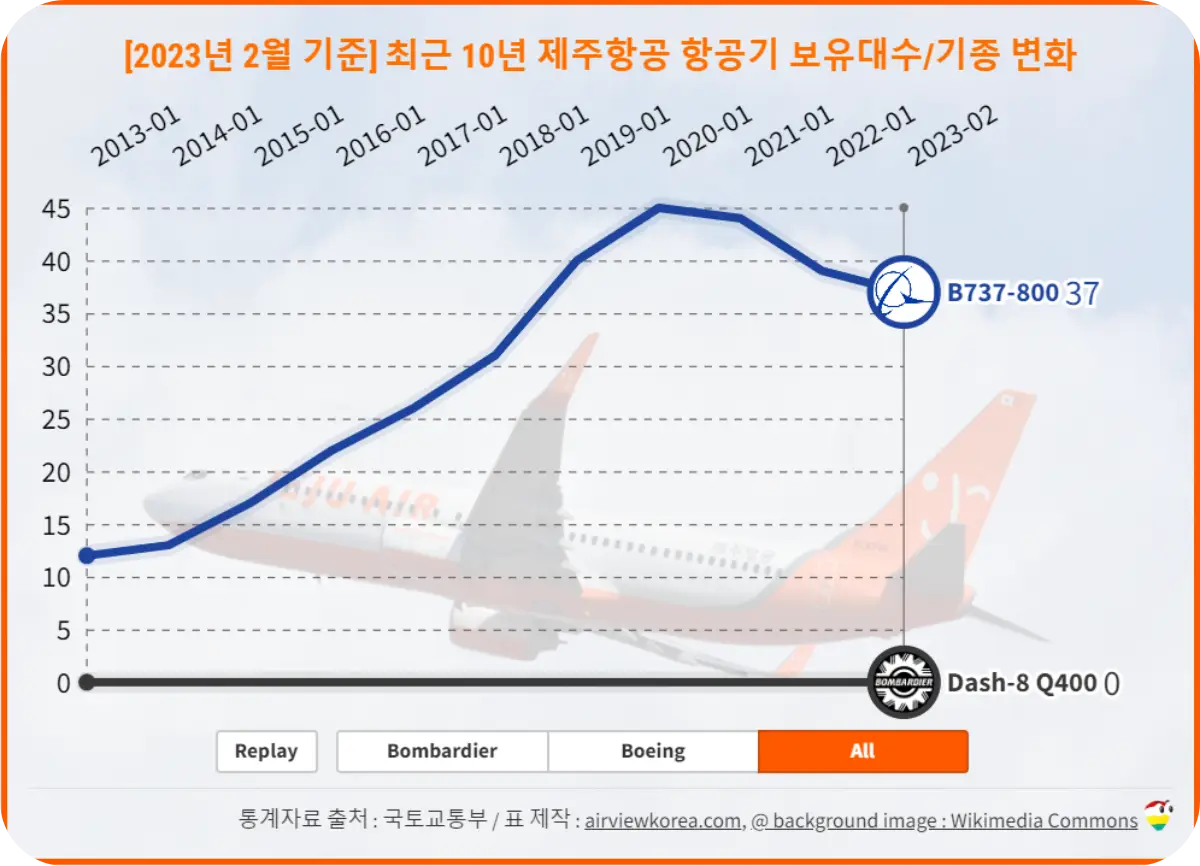 2023년 제주항공 비행기 보유 대수 및 기종 현황