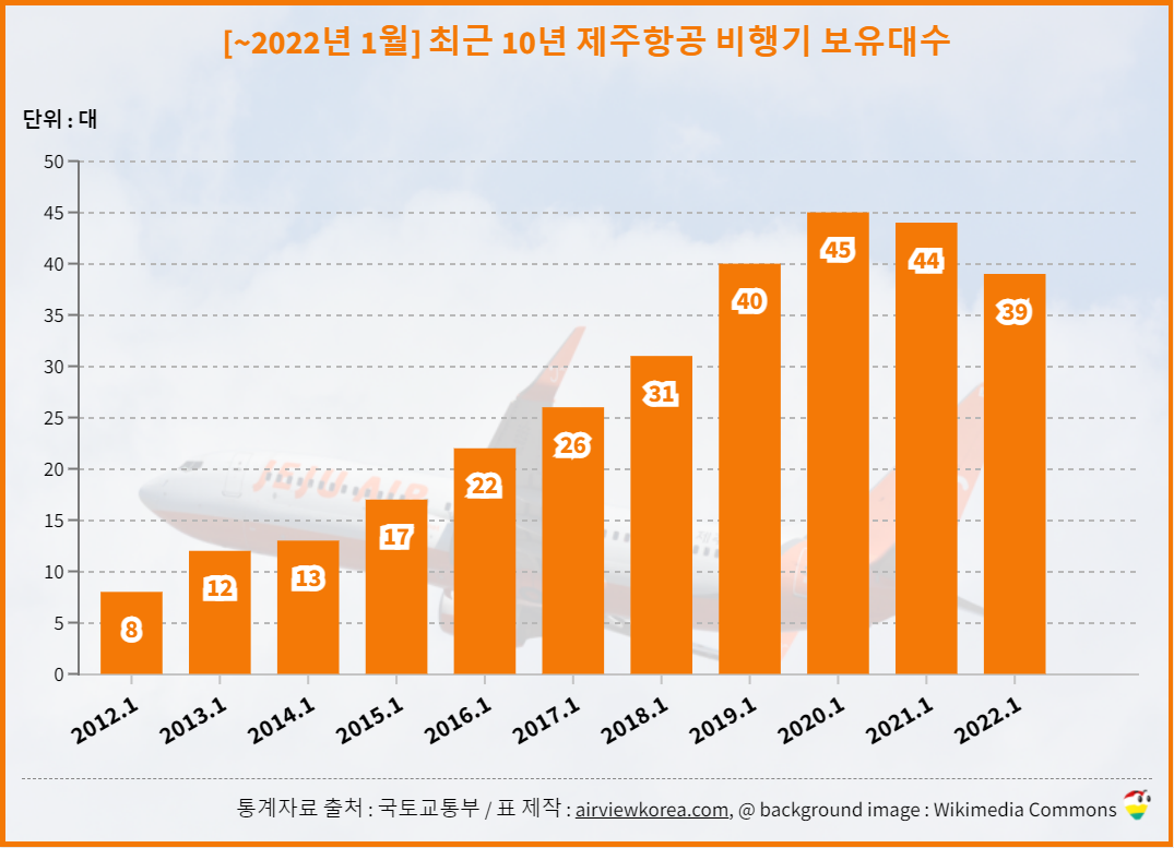 [~2022년 1월] 최근 10년 제주항공 보유기종/보유대수 변화