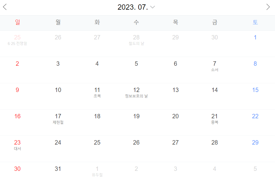 아쉽지만 7월에는 쉬는 평일이 없습니다