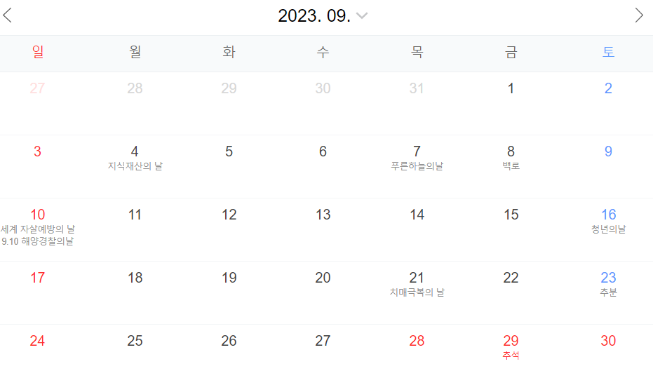 • 9월 28~29일 목요일, 금요일 (추석 연휴)