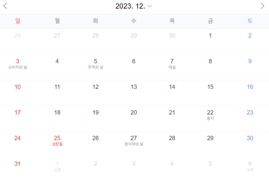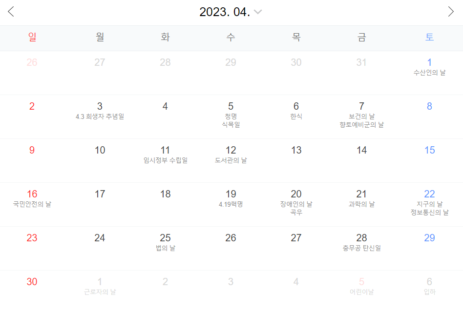 2023년 월별 공휴일 연휴 일정 달력에 정리