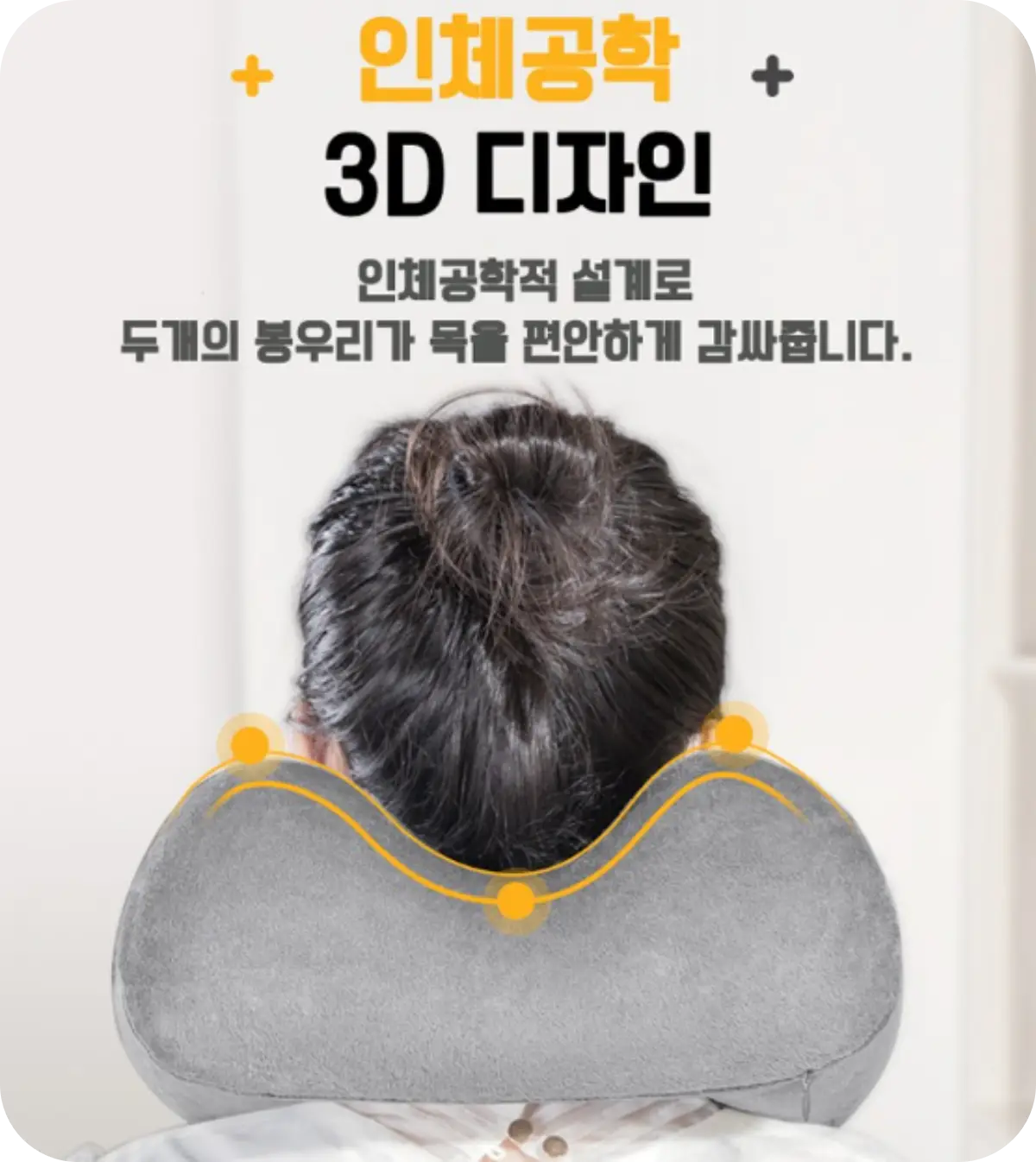 🔵 저렴한 가격 🔵 고밀도 메모리폼 사용 🔵 유연한 3D 디자인 🔵 뒷목 받쳐주는 라인 🔵 분리 세탁 가능한 커버 🔵 위치 고정 버튼 장착 |