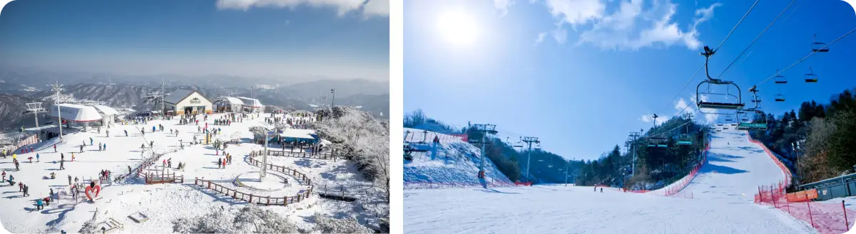 우리나라에 있는 스키장들은 상대적으로 추운 강원도, 경기도 지역에 집중되어 있습니다.