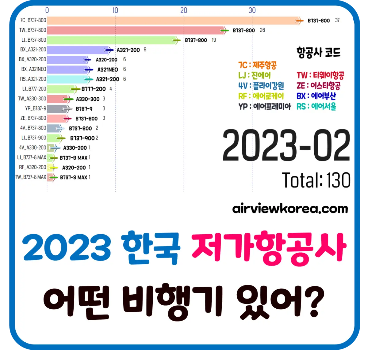 2023 한국 저가항공사(LCC) 비행기 몇대 있어? 기종은?