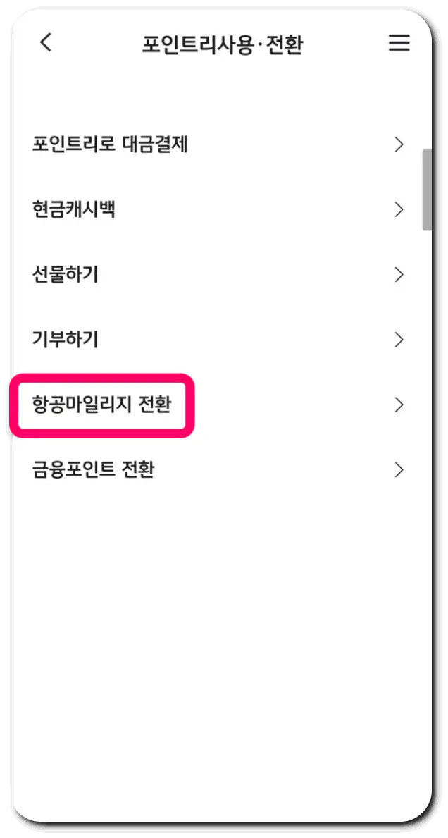 KB국민카드 포인트리-대한항공 마일리지 전환 신청 방법