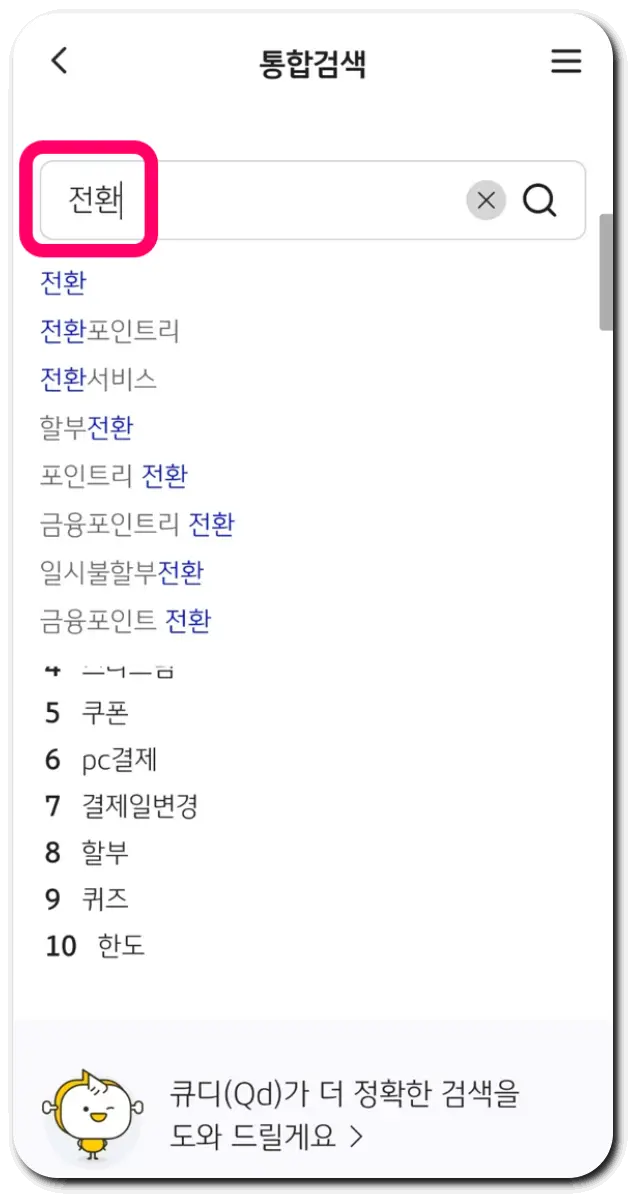포인트 전환 검색을 하기 위해, 우측 상단에 있는 돋보기 아이콘을 눌러줍니다