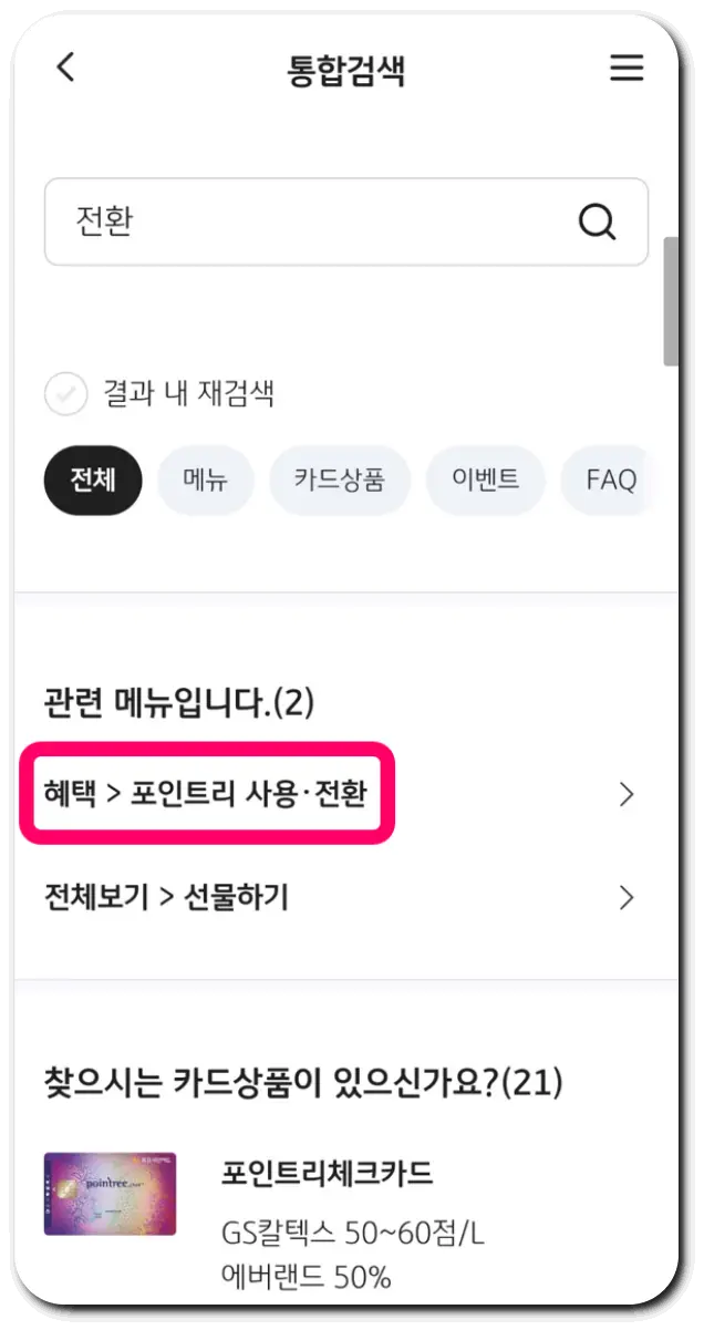 포인트 전환 검색을 하기 위해, 우측 상단에 있는 돋보기 아이콘을 눌러줍니다